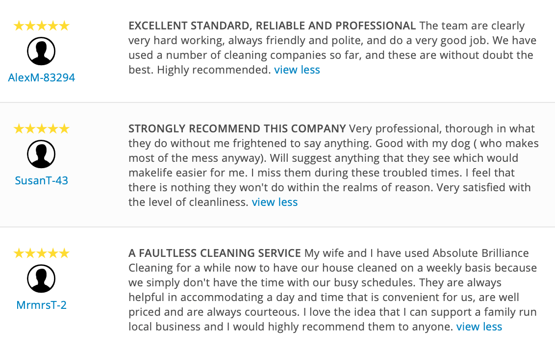 A few reviews from our commercial clients who have chosen us to look after their cleaning are shown below.
